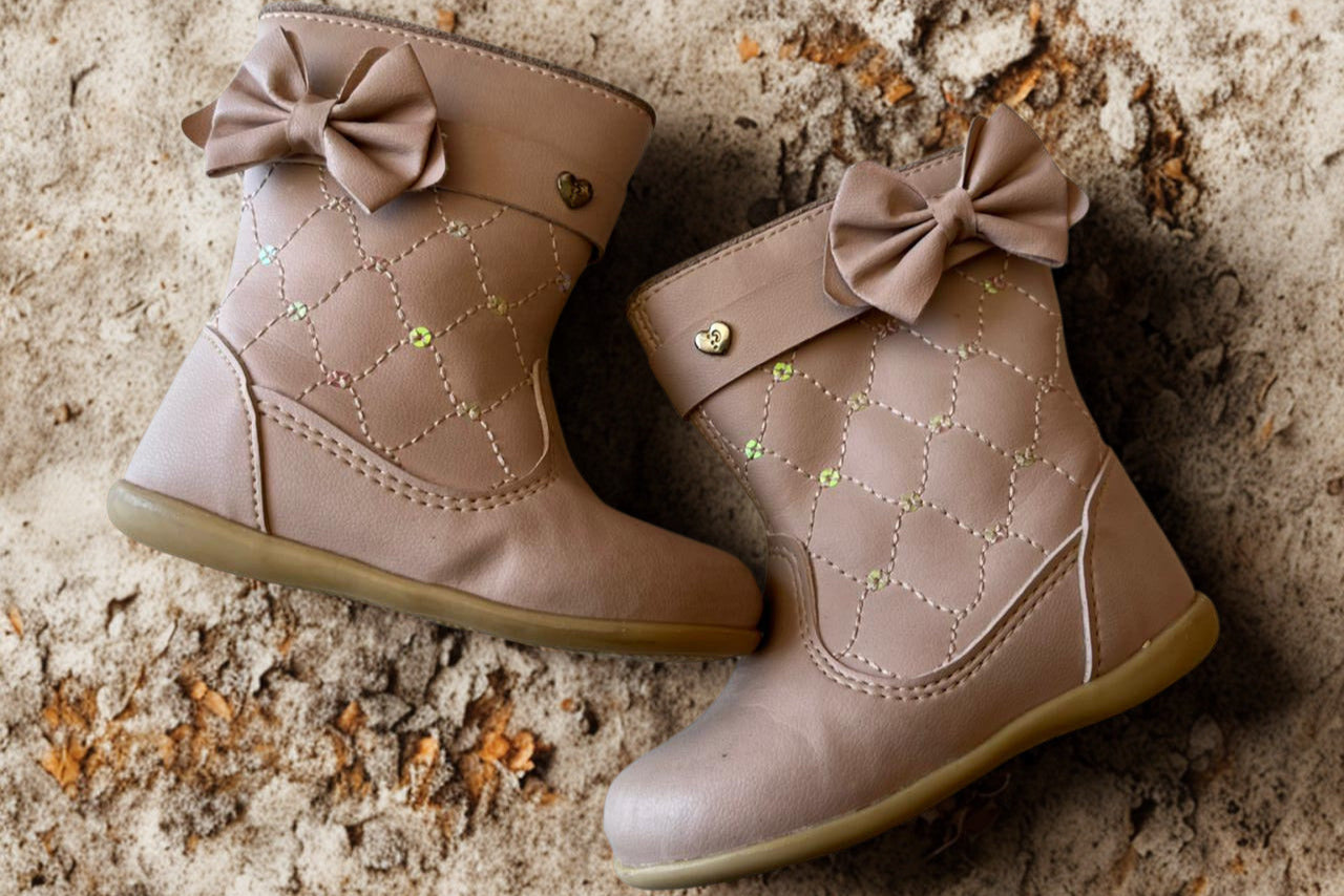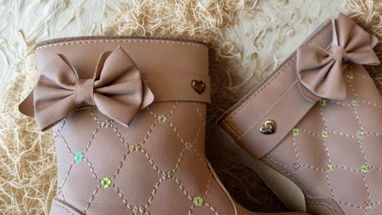 Bota Infantil Bebê Menina Laço e Matelassê- Tamanho 21