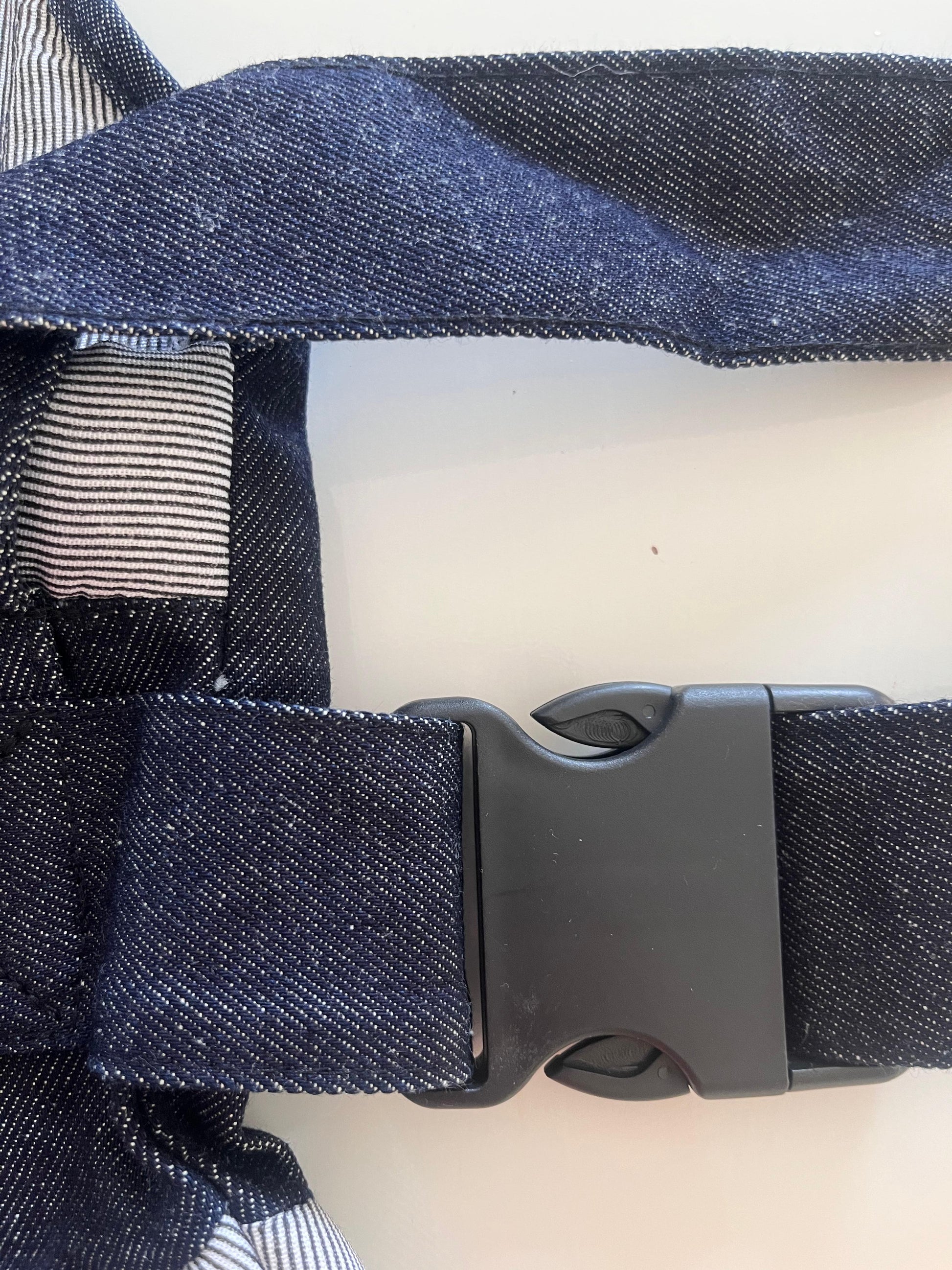 Canguru cadeirinha para bebê confeccionado em jeans.