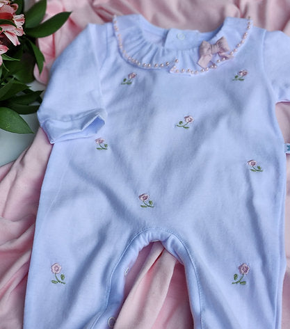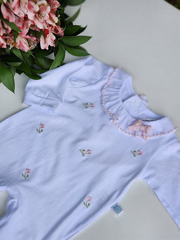 O Macacão Longo Flor Bordado Pérolas é a peça perfeita para deixar sua bebê ainda mais adorável e confortável. Feito em 100% algodão sustentável, este macacão é suave e respirável, perfeito para a pele sensível do seu bebê. Os lindos detalhes de bordados de florezinhas no macacão e pérolas na gola dão um toque especial e elegante a esta roupinha. Com botões de pressão na parte inferior, facilita na hora de vestir e trocar a fralda do bebê. É uma escolha encantadora para qualquer ocasião, desde um passeio no parque até uma festinha de aniversário.