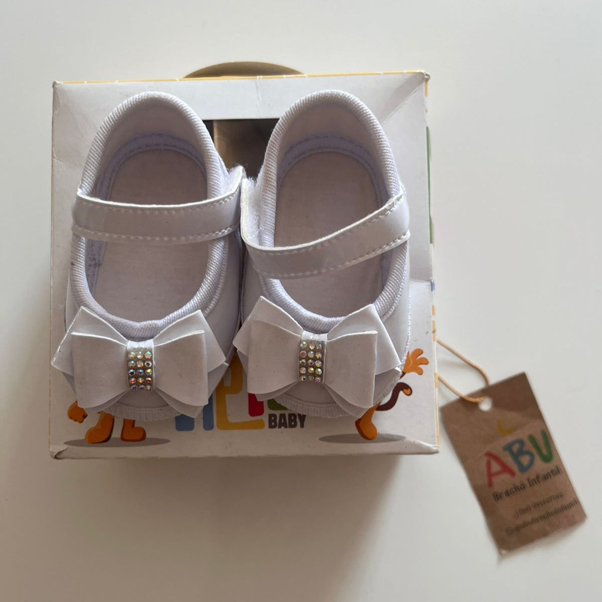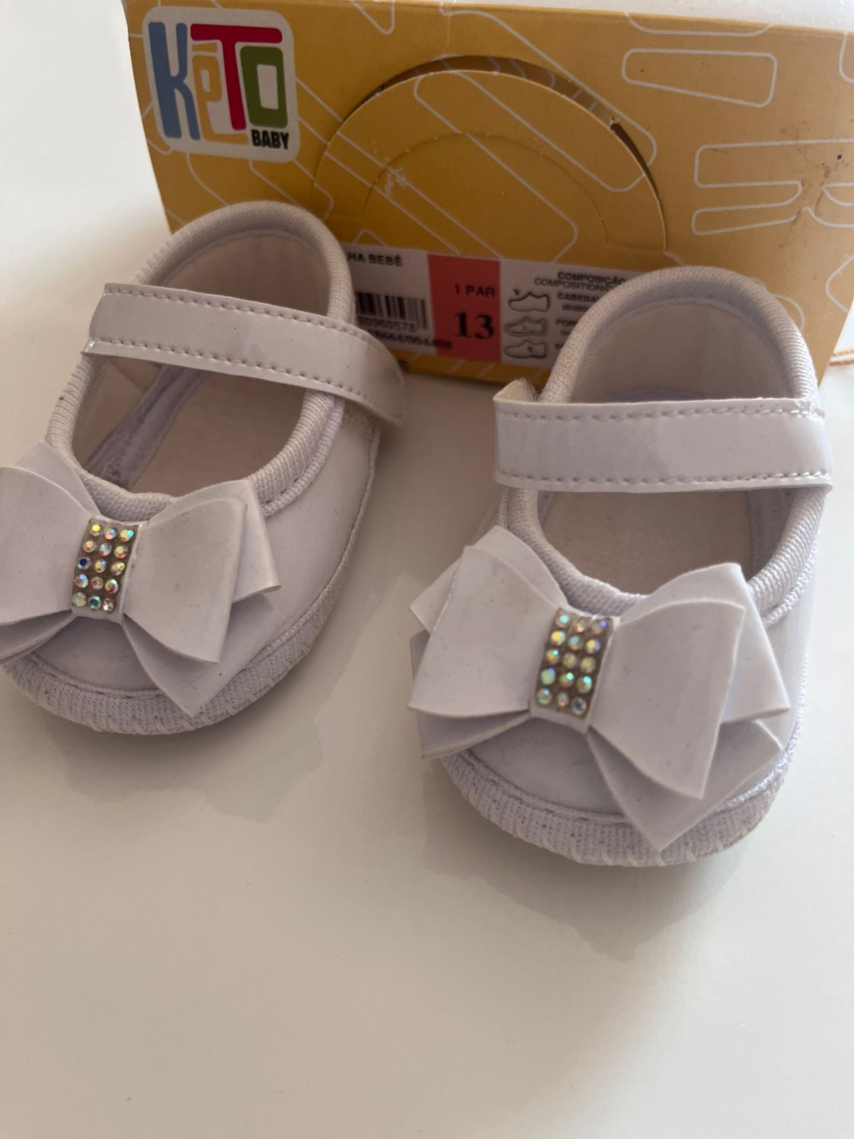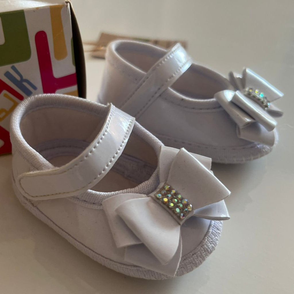 Sapatilha para bebê em verniz Laço Duplo Strass Branca - Keto Baby -Numero 13 de 0 a 3 meses 8,8 cm em média