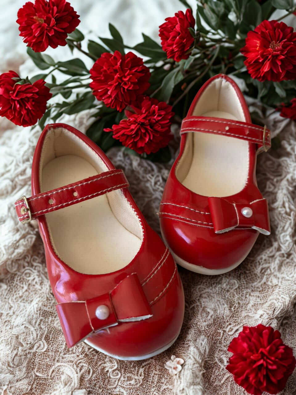 As sapatilhas estilo Mary Jane vermelhas combinam o charme clássico com detalhes refinados, como a tira com fivela que atravessa o peito do pé, além de delicados laços e pérolas que agregam elegância. Perfeitas para ocasiões especiais ou para adicionar um toque sofisticado ao visual do dia a dia, oferecem conforto aliado a um design atemporal, ideal para as mamães que valorizam estilo sem abrir mão da praticidade.