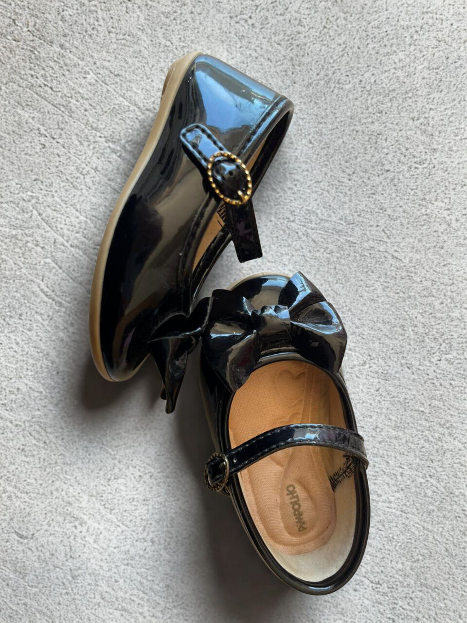 Sapatilhas Infantis Pimpolho Preta de Verniz com Laço- Tamanho 19