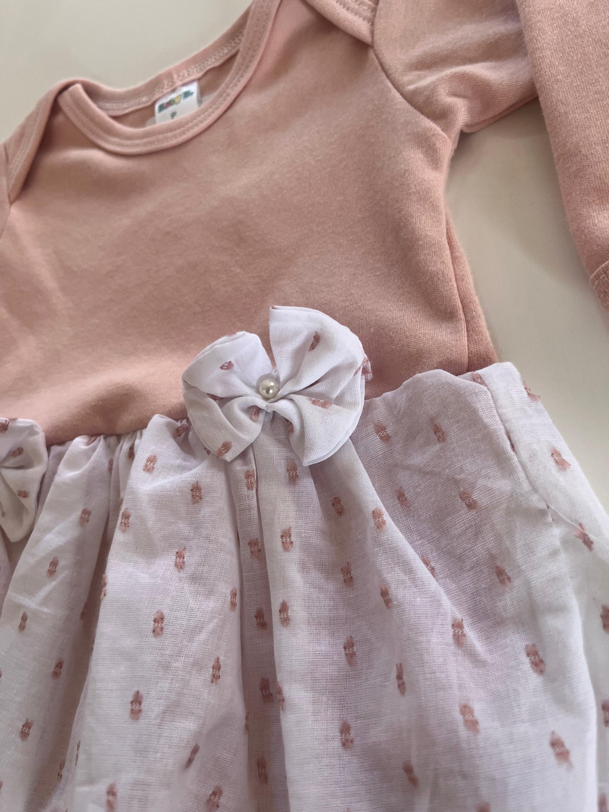 Vestido body infantil laços Tam P de 0 a 3 meses 100% Algodão