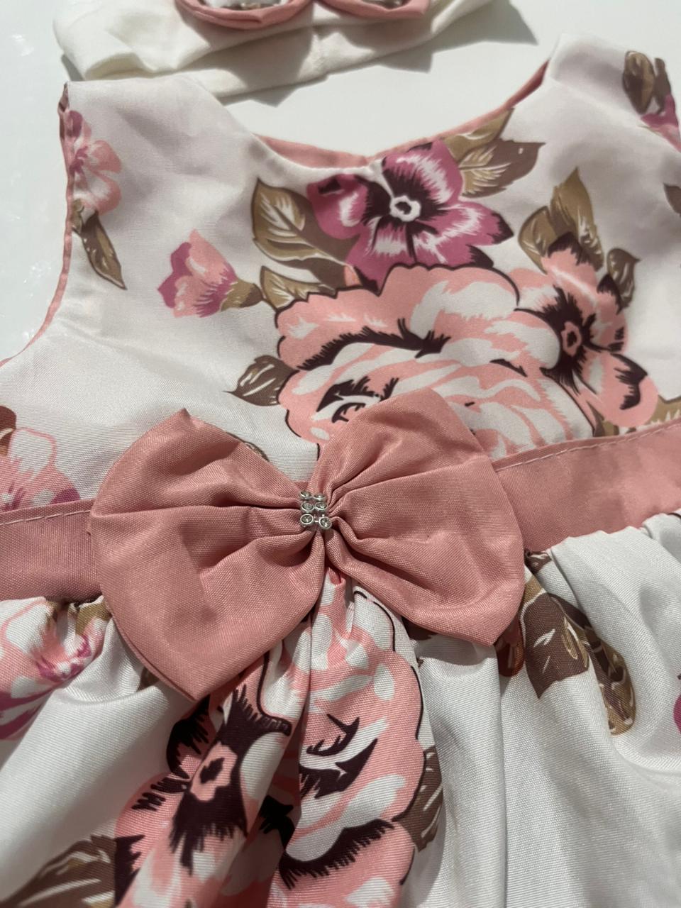 Vestido com faixa Bebê Ariele Luxo Algodão- Tamanho M: 26cm largura X 39cm altura